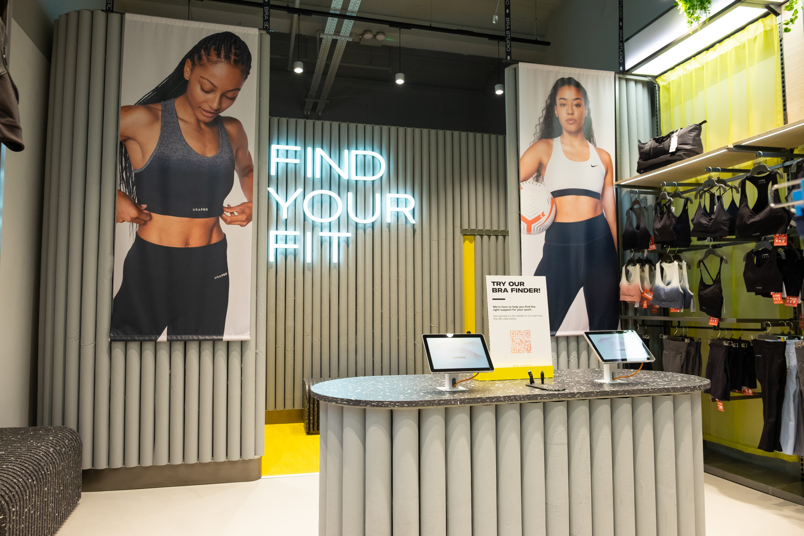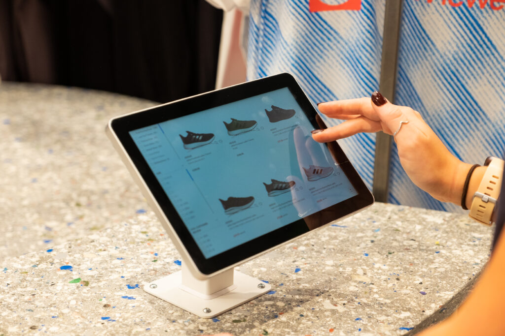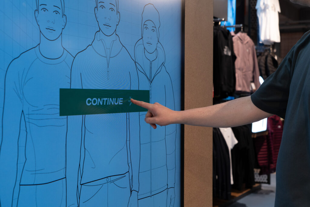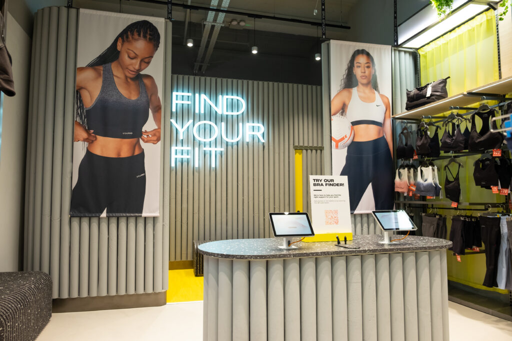From hiking boots to sports bras, our touchscreen Product Finder tablets help customers find the perfect fit. In the outdoor zone, shoppers receive boot recommendations based on terrain and activity. In the women’s section, the same tech powers Sports Bra Finders, offering suggestions based on support level, activity type, and design preference.