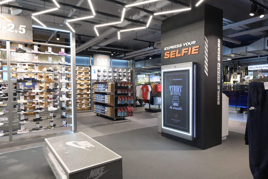 IUF partnered with Sports Direct to develop the Interactive Shopping Concept, a suite of interactive digital tools designed to make shopping more informative, personalised, and immersive. Installed in multiple flagships across the United Kingdom, from Cardiff to Oxford Street, the concept includes digital mannequins, touchscreen product finders, and immersive audio experiences. Each activation is built to guide decision-making, increase product confidence, and deliver tailored recommendations based on shopper needs.